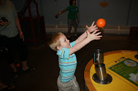While in Columbus we also visited the COSI museum. There were a lot of cool science exhibits. They also had a very cool dinosaur exhibit which Aiden thought was very loud. He walked around with his hands over his ears and refused to get his picture taken with the dinosaurs. We also went to see the Dinosaurs 3D movie. Aiden enjoyed the movie and was fascinated by how the dinosaurs looked like they were off the screen.
